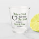 Cute Take A Shot We Tied The Knot shot glass with bride and grooms name. Change the text yourself when you order.