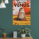 Take a trip to Venus travel poster. Venus space craft travel poster cartoon.