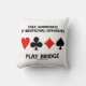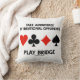 Showcase your wry sense of bridge humour with this throw pillow featuring the four card suits along with the following bridge advice: "Take Advantage Of Irrational Opponents Play Bridge". Memorable bridge saying attitude throw pillow for any avid bridge player who recognises irrationality whenever playing a bridge hand!