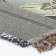 A quality printed throw has its advantages. This is a much finer weave throw than its loopier cousins, and though lighter, it is worth the investment for custom room accessorizing. The back is much prettier than the typical brown, and the fringe on the long sides very vivid, the selvage nicely done. Before photographing, I washed the throw in cold water, delicate, with a thicker woven throw the same size. On tumble dry low, this throw was dry in half the time as the other. This is a very practical quality if you use throws for furniture covers or to wrap up in frequently. The sleekness of the fabric makes it a great layer for accenting or protecting without the feeling of sitting on too much stuff. Perfect for napping or when you feel a light chill coming on. The color printing is beautiful and on this fabric, matched the design and color of my Photoshop image. This is an advantage for blending room fabrics and colors. The fringe on the short sides prints the colors from the design image and therefore varies from the side fringe. I streaked a white fractal line through the plaid pattern to give the illusion of weaving. This printed as crisp as an illusory thread, and put some white in the short side fringe, showing another advantage of print vs loomed- for artistic purposes, line lines, detail, and color integrity can be planned and preserved. My loomed throws have color limitations and more of a needlepoint texture. Print throws reproduce an exact image. The throw felt a little stiff straight out of the package, but this went away in the first delicate wash. Of course I searched the wash water for ink or bleeding and there was none.