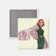 Artist: Coby Whitmore | Red haired woman in a green dress holding out a pink shaw.