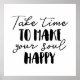 Take Time To Make Your Soul Happy Inspirational Black & White Quote Saying Typography