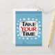 "Take Your Time" is a cute inspirational or motivational quote with a white accent shape surrounded by white textured whimsical dots.