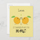 Cute cartoon mango fruit dancing together with the phrase it takes two to mango tango postcard