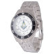 Has heft and feel of expensive stainless steel quartz watches. Good band with safety catch. I removed links, which is easy because engraved arrows show direction to push the linking pins. As always by this seller, the image (a railroad logo) is a perfect reproduction of my emailed image, and is precisely spaced and aligned.