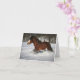 A beautiful Clydesdale stallion runs through a winter wonderland on this beautiful note card.