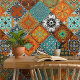 Bring timeless Mediterranean beauty to your home with this floral tile design. Inspired by Moroccan and vintage European patterns, this elegant geometric artwork adds colour and charm to kitchens, bathrooms, and decorative wall tiles. Perfect for custom ceramic tiles, coasters, and stylish home décor accents. Part of a coordinated collection of 18 mix-and-match tile designs in orange, blue, brown, black, and white.