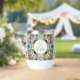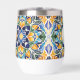 Blue and brown colourful vintage Mexican talavera azulejo tiles personalised printed wine tumblers bridesmaids gifts bridal party favours monogramed customised tumblers gifts for her Christmas gifts for mum