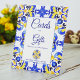 Talavera azulejo blue yellow tiles vintage Mexican bridal shower gifts table sign, Mediterranean Italian blue tile pattern Maiolica blue tiles Greek tiles pattern bridal shower table sign, personalised table decor