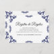 This Talavera Black Floral Minimalist Spanish Wedding Enclosure Card design features a minimalist approach with delicate, symmetrical black floral motifs placed in each corner and along the edges. The small, leaf-like shapes create a sense of movement while maintaining an airy, open space in the center, allowing for ample text placement. The simplicity and elegance of the pattern evoke traditional Talavera tiles, giving the design a classic Mexican artisanal feel.