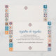 This Talavera Colorful Floral Fiesta Spanish Wedding Enclosure Card design features vibrant, symmetrical borders inspired by traditional Talavera patterns, with intricate geometric motifs running down both sides. The color palette incorporates classic Talavera hues like cobalt blue, orange, and turquoise, echoing the ceramic artistry of Puebla, Mexico. The central space is framed by colorful tile designs, providing a striking yet balanced backdrop, perfect for a Mexican-themed celebration.