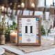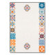 This Talavera Colorful Floral Fiesta Spanish Wedding Table Number design features vibrant, symmetrical borders inspired by traditional Talavera patterns, with intricate geometric motifs running down both sides. The color palette incorporates classic Talavera hues like cobalt blue, orange, and turquoise, echoing the ceramic artistry of Puebla, Mexico. The central space is framed by colorful tile designs, providing a striking yet balanced backdrop, perfect for a Mexican-themed celebration.