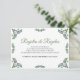 This Talavera Green Floral Minimalist Spanish Wedding Enclosure Card design features a minimalist approach with delicate, symmetrical green floral motifs placed in each corner and along the edges. The small, leaf-like shapes create a sense of movement while maintaining an airy, open space in the center, allowing for ample text placement. The simplicity and elegance of the pattern evoke traditional Talavera tiles, giving the design a classic Mexican artisanal feel.