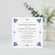 This talavera style rehearsal dinner invitation is inspired by the beautiful tile and folk art found in Mexico and throughout the American southwest. The bold blue colour and classic typography create an elegant look that is both modern and traditional. Your guests will love receiving this striking talavera invite.