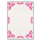 This Talavera Pink Floral Minimalist Spanish Wedding Table Number design features a minimalist approach with delicate, symmetrical pink floral motifs placed in each corner and along the edges. The small, leaf-like shapes create a sense of movement while maintaining an airy, open space in the center, allowing for ample text placement. The simplicity and elegance of the pattern evoke traditional Talavera tiles, giving the design a classic Mexican artisanal feel.