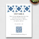 An elegant Mexican wedding details card with a Talavera tile inspired design. Perfect for your Spanish or Mexican wedding. See my Talavera Style Mexican Wedding Collection for more coordinating items.