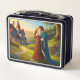 This is a standard metal lunchbox that appears to work just fine. We designed this box ourselves with an uploaded photo and custom text on the front and back. It looks absolutely beautiful except the front of the lunchbox is not centered like it shows in the photo. The print borders don't align with the inset flat part of the box where the preview photo online showed it perfectly centered in there. The back looks nice and centered though.