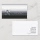This elegant and professional talent manager business card features a chrome textured background. Your monogram letters appear within an equally elegant chrome bordered circle on the lower left, while your name and title appear in simple easy to read white letters on the lower right. All the elements blend to give an elegant yet impactful impression. Perfect for administration, management, professional, classy, luxury, entertainment, events, entertainer, skilled talents, talent, show business themes.