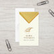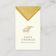 This strong, elegant talent manager entertainment skills and services business card has a simple design comprising three gold triangles pointing downwards from the top two corners towards your monogram initial in a beautiful calligraphic script font. Your contact details appear on the back of the card. Strong, clear, modern, typeface is used in black to contrast against the off-white background. Perfect for entertainment, performing arts, show business, talent, talent skills, talent management, artistic skills, professional, business services, bright, white, gold, stripe, strong, professional, modern, chic, elegant themes. The generic nature of this design makes it suitable as a business card for any type of business or profession.