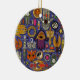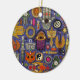 Illustrated talisman pattern, originally drawn in ink. Features various objects believed to bestow good fortune, health and happiness. Available in several colours.