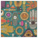 Illustrated talisman pattern, originally drawn in ink. Features various objects believed to bestow good fortune, health and happiness. Talisman, amulet, luck, evil eye, hamsa, magic, fox, phoenix, scarab, yin and yang, jewellery, jewellery, charm, illustration, jewel, metal, viridian green