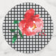 Talk Derby to Me tabletop confetti with a red rose on a black and white gingham check background, perfect for your Derby party, Derby-themed bridal shower decorations. MATCHING items in our collection.