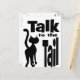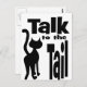 Black and white design with a black cat walking away and "Talk to the Tail" at the right.