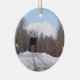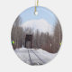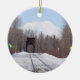 Rail bridge with Mountain peak on one side a winter woodland path in Talkeetna, Alaska