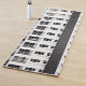 This yoga mat has a cool tall picture of an apartment complex on it.