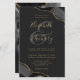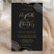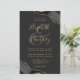 A black watercolor agate design trimmed with faux gold glitter appears in two corners of this elegant design. Personalise it with the couple's names in gold-coloured handwriting script over a large grey ampersand. Add the wedding details in gold-coloured copperplate and italic fonts on an off-black background. The reverse side features a matching black and gold agate design. NOTE: Envelopes are not automatically included with these budget invitations, so please remember to choose the "white envelopes" option!