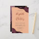 A burgundy red watercolor agate design trimmed with faux gold glitter appears in two corners of this elegant design. Personalise it with the couple's names in burgundy handwriting script over a large ampersand. Add the wedding details in charcoal grey copperplate and italic fonts on a peach background. The reverse side features a matching burgundy and gold agate design.