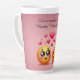 Embrace the warmth of 'Tall Latte Love,' a charming latte mug for couples with heart-shaped handles that interlock. The delightful pink background hosts adorable emojis sharing a loving gaze, making every sip a shared moment of affection.