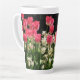 Tall latte mug with pink tulips. A great mug to brighten up your hot drink experience! Leave a comment if you would like this image on a different product! Thanks.