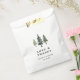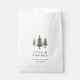 Rustic chic wedding favour bags say thank you to guests in wintry woodland style. Bags feature a trio of pine tree silhouettes in rich shades of hunter green with "love and thanks" and your names and wedding date. Designed to match our Tall Pines wedding collection.