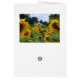 A tall sunflower stands out in a field of beautiful sunflowers. On the back of the card is a photograph of another sunflower.