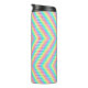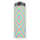 Tall tumbler with a black lid features a vibrant, geometric design of colorful concentric diamonds made from small overlapping circles, creating a lively, energetic tone.