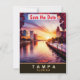 Tampa save the date wedding invitation, travel postcard. Sunset over the city waterfront.