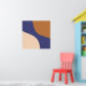 A minimalist design of curvy organic shapes in tan, blue and beige.
