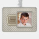 A stylish ornament in a tan argyle pattern with area for name or monogram with small cream cross. This makes a special keepsake for any religious event. Just add your own photo and personalise.