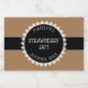 These canning label stickers feature white text for your name, contents, and date on a black circle background surrounded by a white lace border on a tan background.