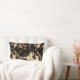 Modern lumbar pillow features an artistic abstract geometric design in beige, tan and black. Black, tan and beige geometric shapes interlock to form a unique and interesting colour block pattern.