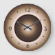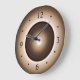 A Tan Brown edge with a ring design, includes a moon effect at the centre.Available in square or round shapes. Numerals are in black, Roman font. Please Note > Designers Image has an illuminated effect only and is Not a Led product!