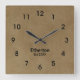 Personalise this modern neutral wall clock design with your own text. Acrylic wall clock is printed in a tan stucco look look digital pattern that can fit into any modern colour scheme and is available in your choice or round or square faces.