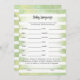Enjoy playing this Baby Language baby shower game on soft, green and white watercolor stripes background. Cute, tan, bunny rabbit on back with templates created for you.