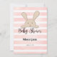 Enjoy playing this Old Wives Tales baby shower game on soft, pink and white watercolor stripes background. Cute, tan, bunny rabbit on back with templates created for you.