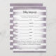 Enjoy playing this Baby Language baby shower game on soft, purple and white watercolor stripes background. Cute, tan, bunny rabbit on back with templates created for you.
