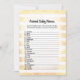 Enjoy playing this Animal Baby Names baby shower game on soft, yellow and white watercolor stripes background. Cute, tan, bunny rabbit on back with templates created for you.