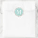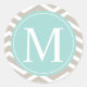 Tan Chevron Turquoise Monogram Classic Round Sticker