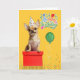 Tan Chihuahua Dog Party Hat Yellow Birthday Card