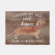 Funny beware of the wet kisser" Tan Dachshund Dog door mat set on a rustic faux background. Visit our shop to view a large assortment of dog breads